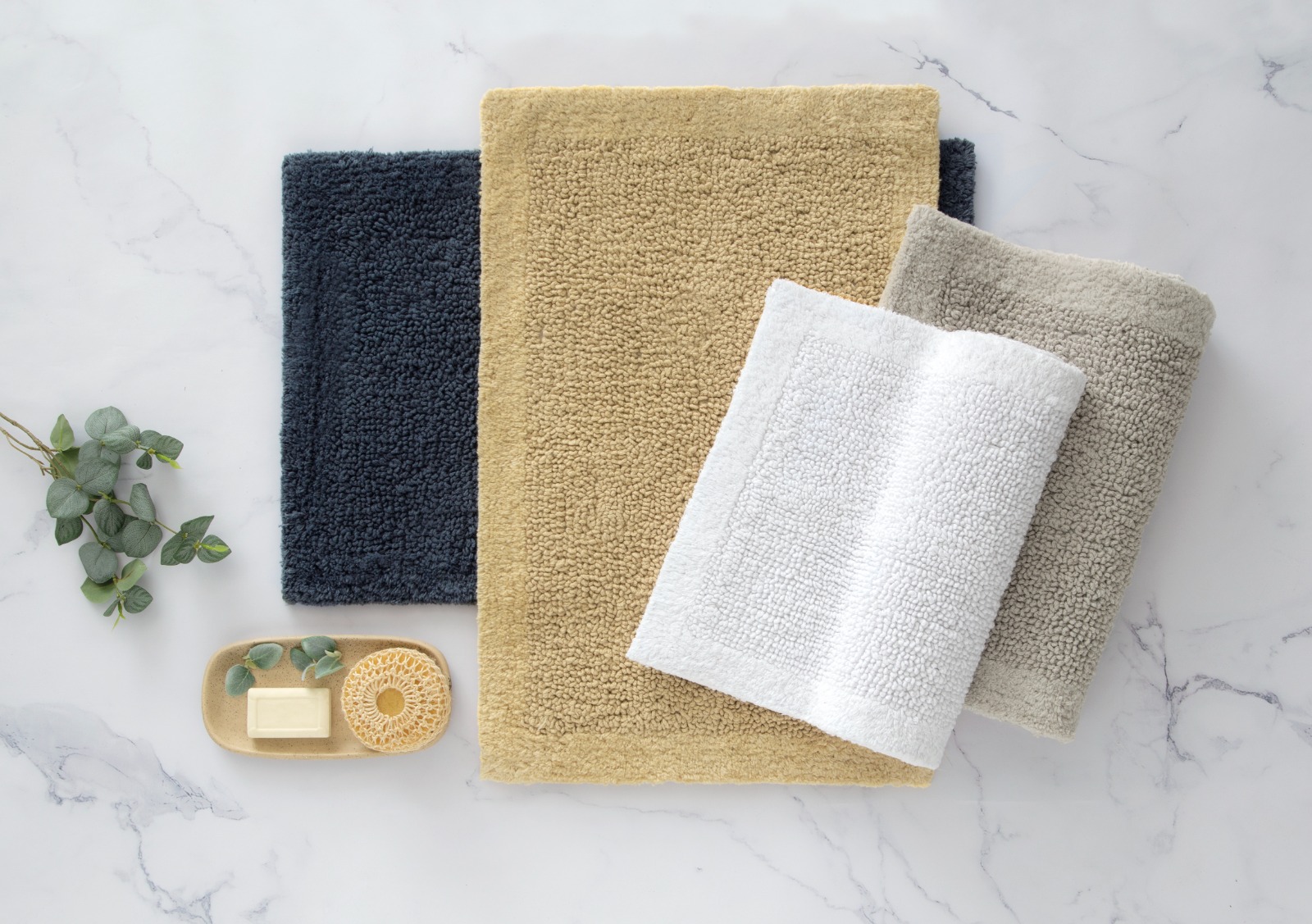 Alfombra confeccionada en material suave y absorbente, ideal para baño o espacios interiores.